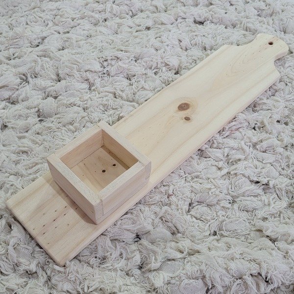 Tabla para baguette o tabla tandilera con copetinera realizada en madera de pino. Medidas de la Tabla aprox.: 47 cm de largo x 10 cm de ancho. Medida de la copetinera aprox.: 8x8x4 cm. Es ideal para utilizar en picadas, en desayunos, en meriendas y en presentaciones de mesa dulce. La copetinera es ideal para colocar palitos salados, maníes o aceitunas. Esta tabla de madera y copetinera podés utilizarla para pintar, decorar y regalar. Son super livianas y de fácil agarre.
