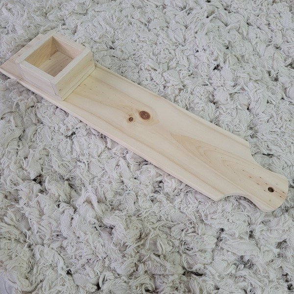 Tabla para baguette o tabla tandilera con copetinera realizada en madera de pino. Medidas de la Tabla aprox.: 47 cm de largo x 10 cm de ancho. Medida de la copetinera aprox.: 8x8x4 cm. Es ideal para utilizar en picadas, en desayunos, en meriendas y en presentaciones de mesa dulce. La copetinera es ideal para colocar palitos salados, maníes o aceitunas. Esta tabla de madera y copetinera podés utilizarla para pintar, decorar y regalar. Son super livianas y de fácil agarre.