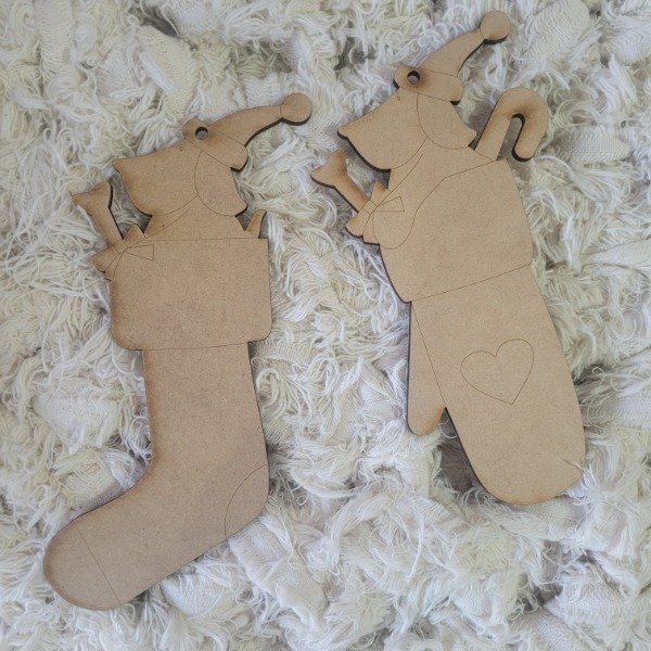 El kit incluye 1 Calcetín o bota navideña y 1 mitón o guante de Papa Noel con un perrito dentro de las piezas.